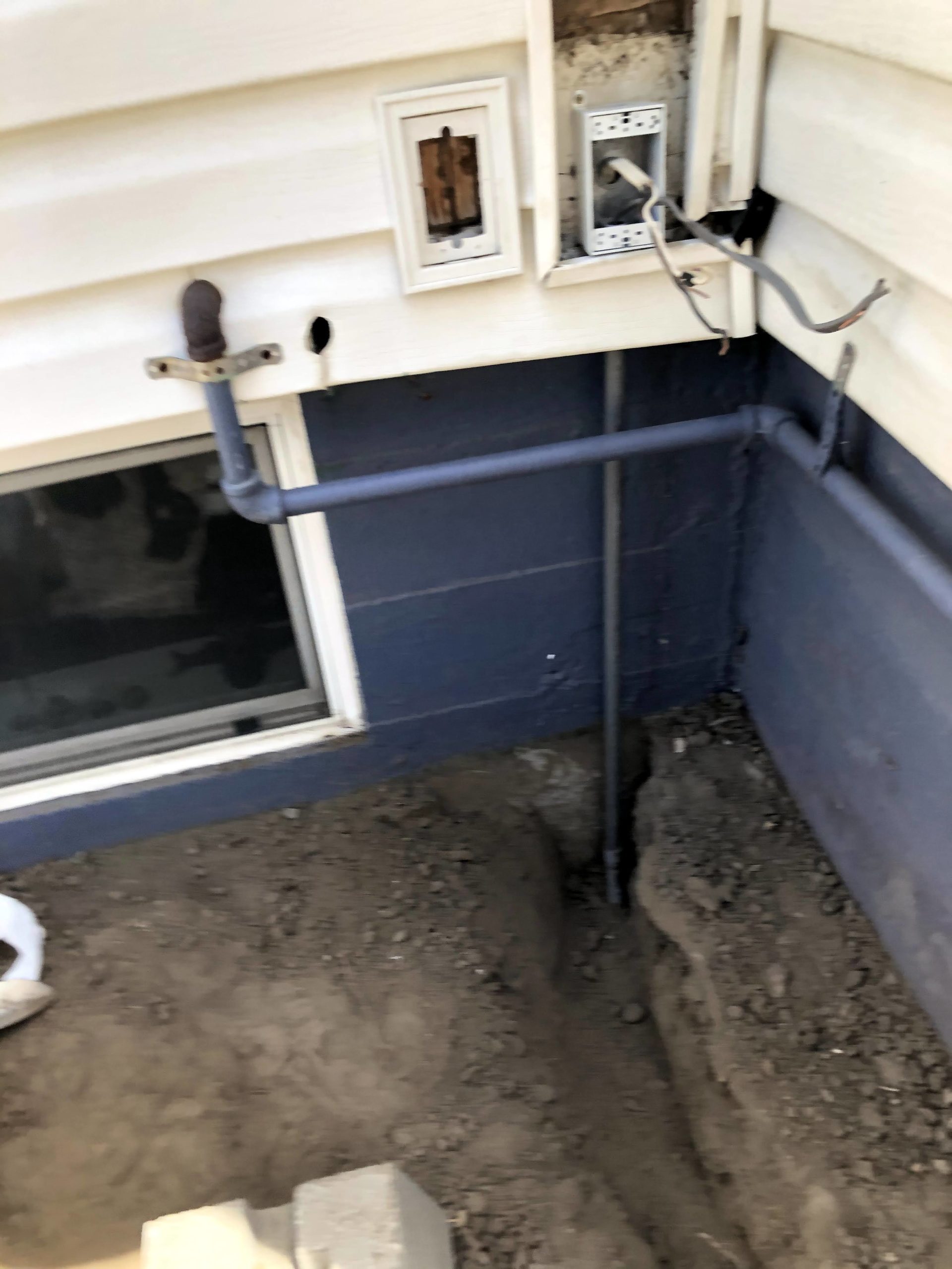 We had decided that we wanted to have power inside the shelter for plugging in devices and lighting. Before we started putting in framing we ran a 1/2″ PVC conduit from our old A/C connection on the side of the house with a 90 degree sweep to about 12″ deep. Inside that we ran 12/2 direct-burial Romex wire so we don’t have to run conduit the whole way. Since we aren’t ready to set the posts we stopped short of where it will run up the side of the middle post in the back.