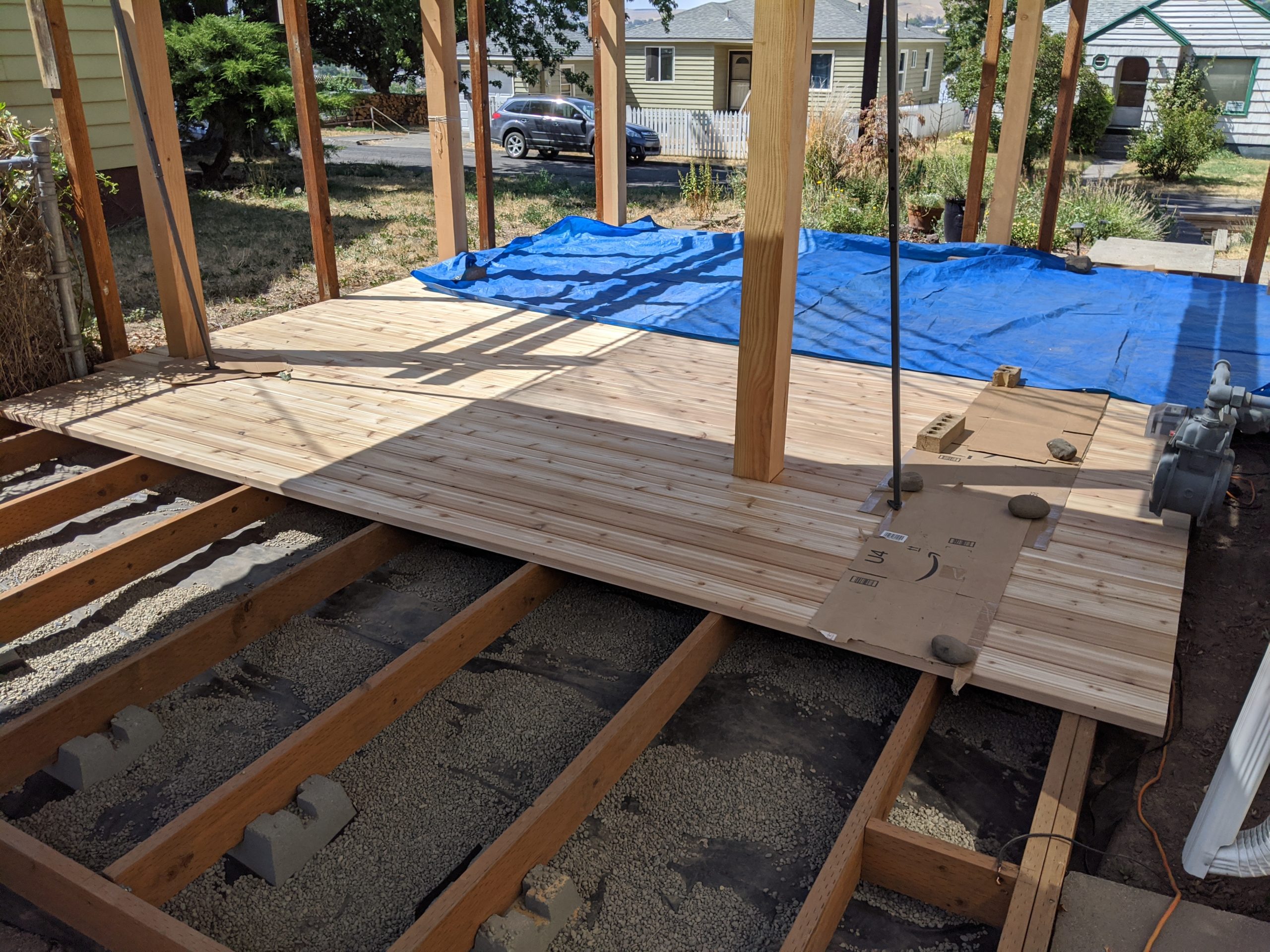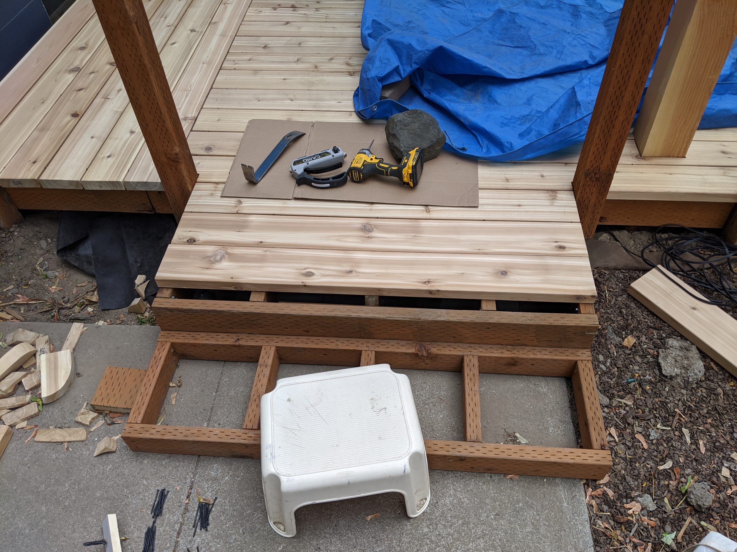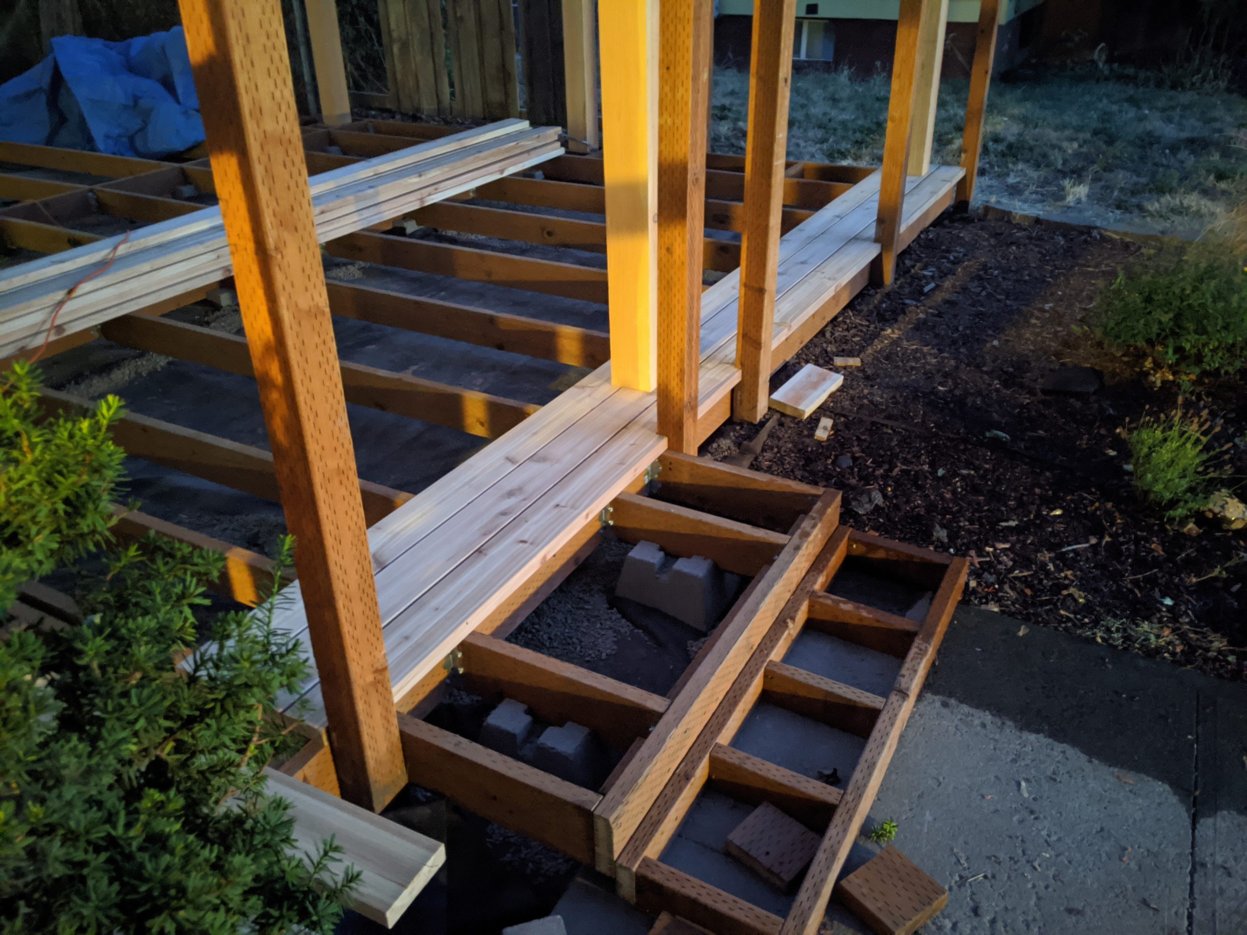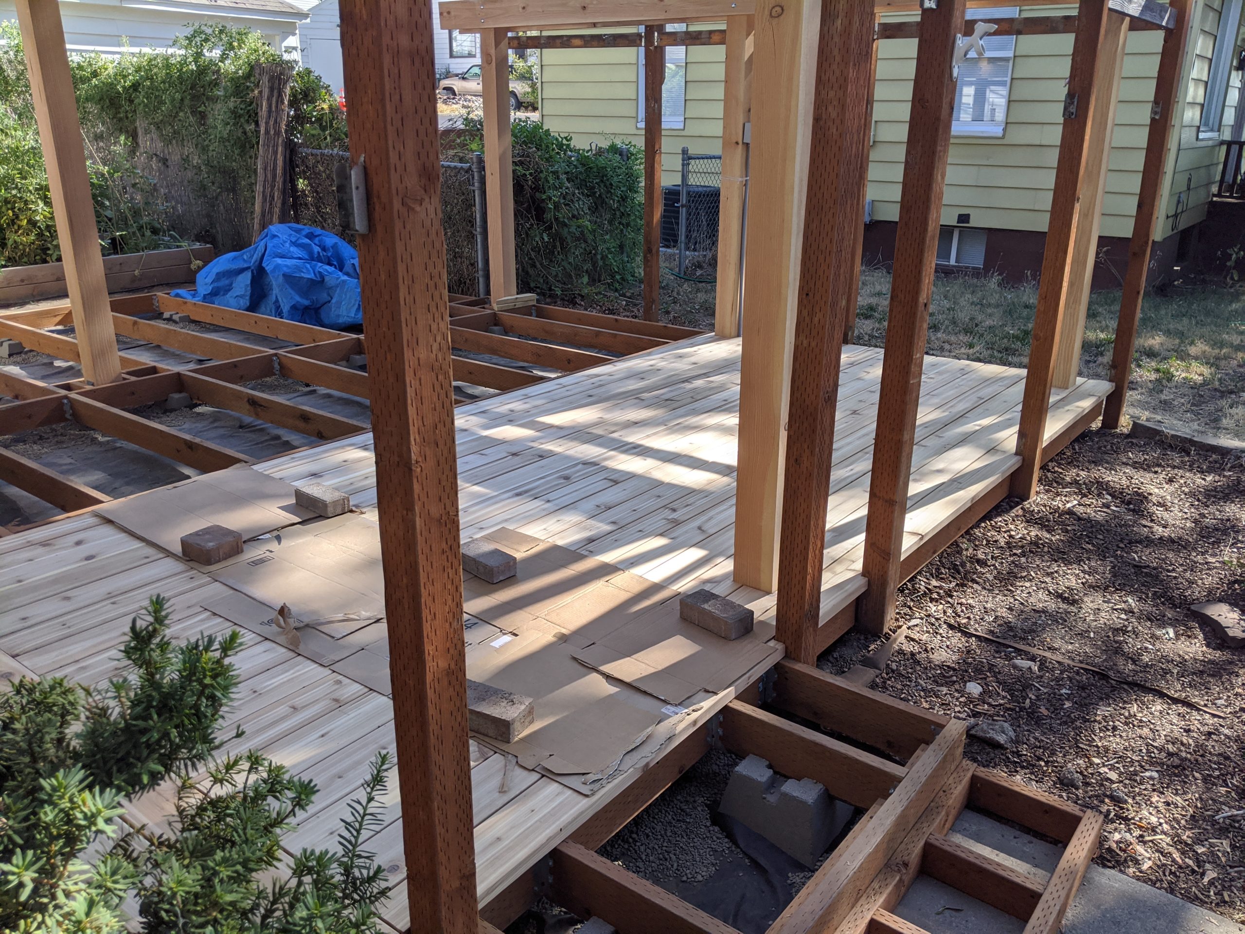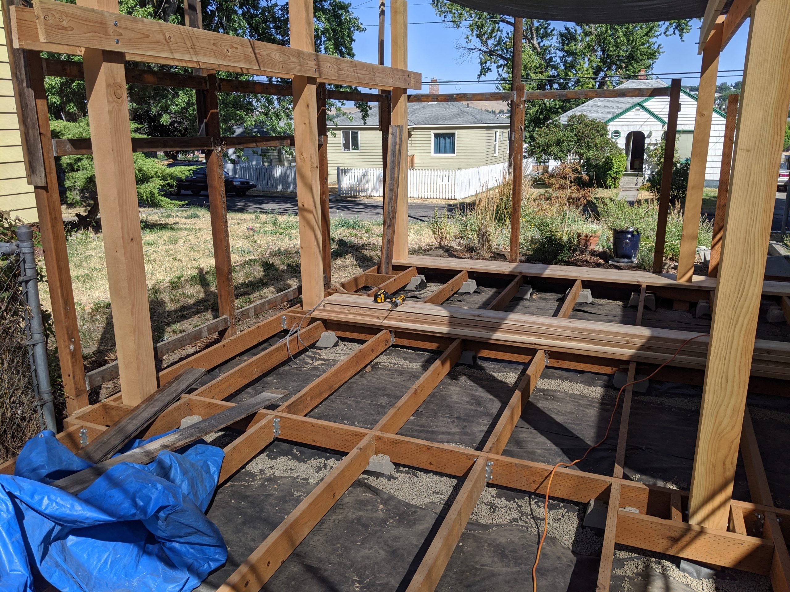Those deck boards are not attached but this still feels like progress!