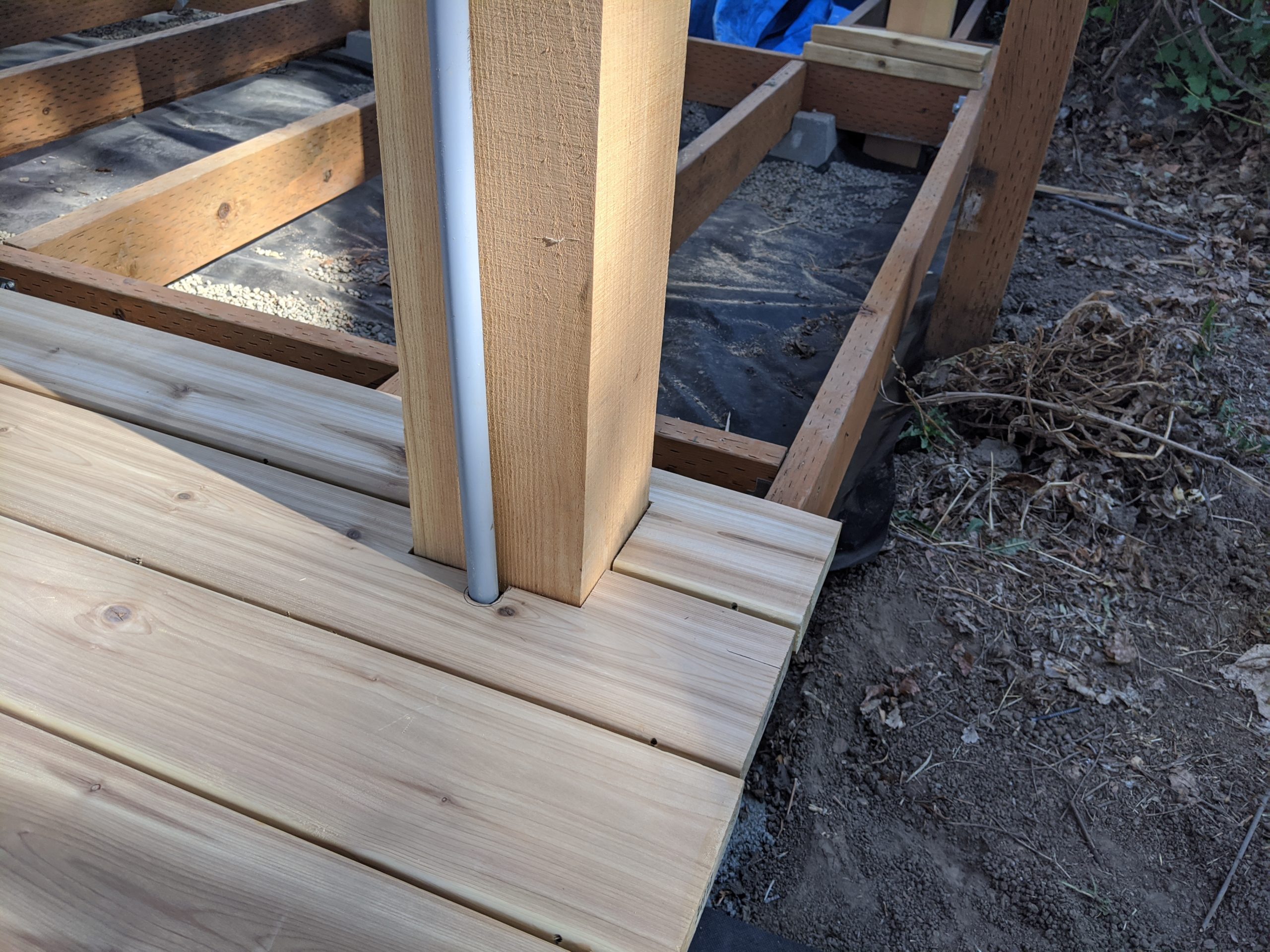Notch around post and conduit. This is where we had to glue the conduit in place and choose the height of the box.