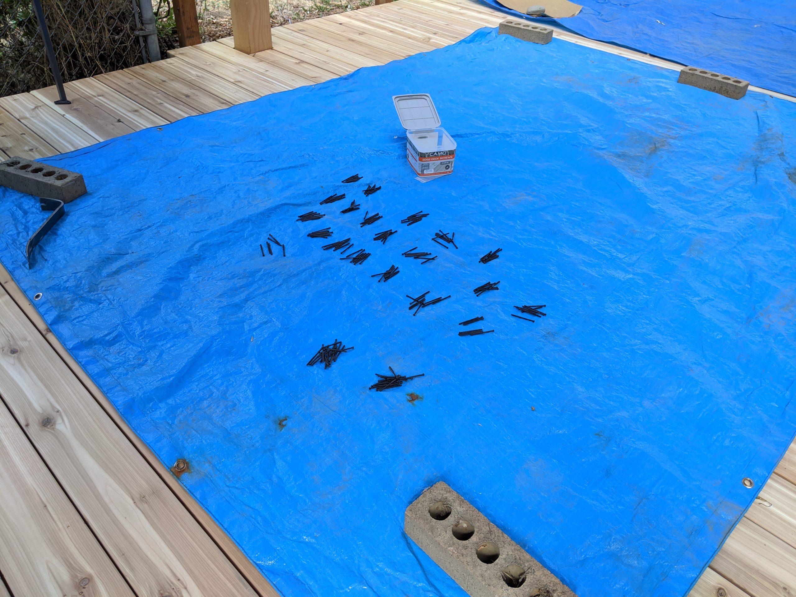 Since the Camo guide includes a special screw guide it can only be used with Camo brand fasteners. They offer two main types: coated and stainless. Since we’re using cedar we sprung for the stainless screws which are considerably more expensive, but won’t have any staining or streaking. We didn’t want to buy a bunch of extra screws so we tried to get pretty close in our estimate which was around 950. They come in boxes of 750 and 250 so we ordered 1000, hoping we wouldn’t have to spring for a whole 250 more!