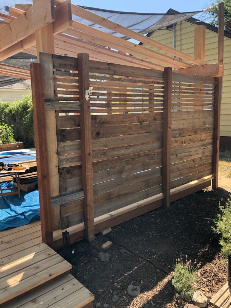 We built the fence around our old deck around 10 years ago. We used an overlapping privacy pattern that blocked out everything including the breeze. Without any shelter in that area, it was too hot to have no ventilation. We took out every 5th board and ended up with this: