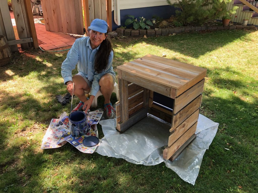 We also built a box using some of the extra fencing material to go around our gas meter. We decided to paint it purple to match the gate.