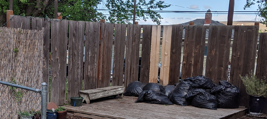 This “before” picture also illustrates how that raised deck area was an inviting space to stage bags of yard debris before taking them to the dump.