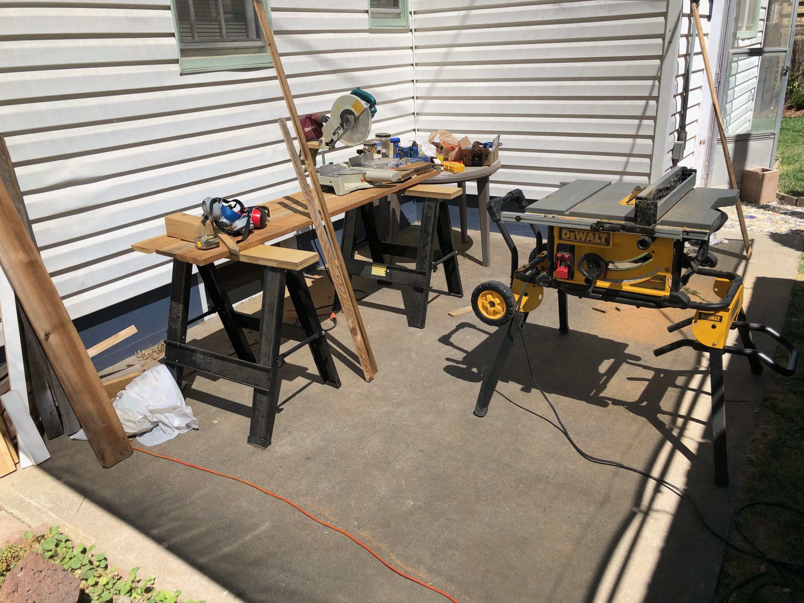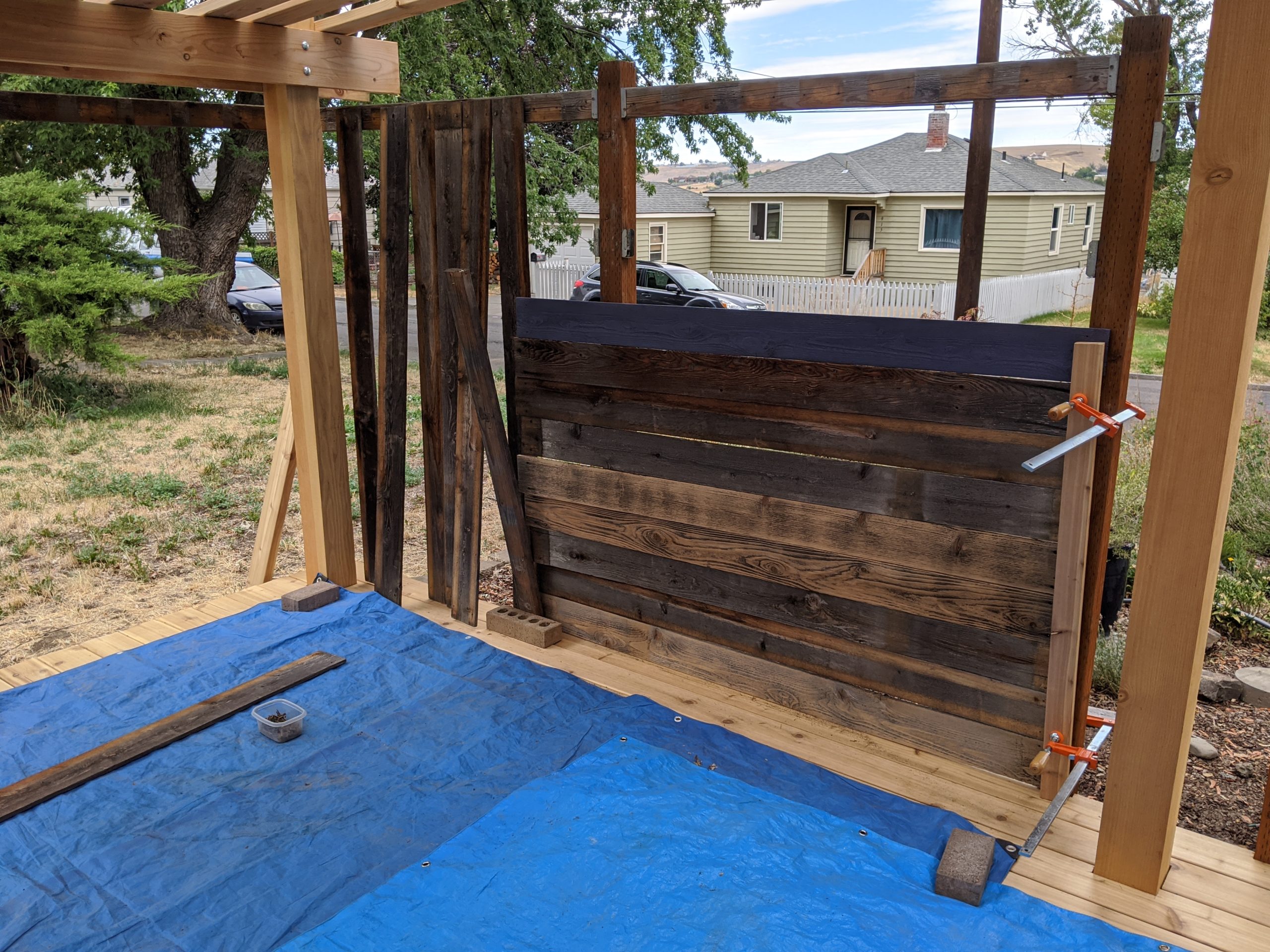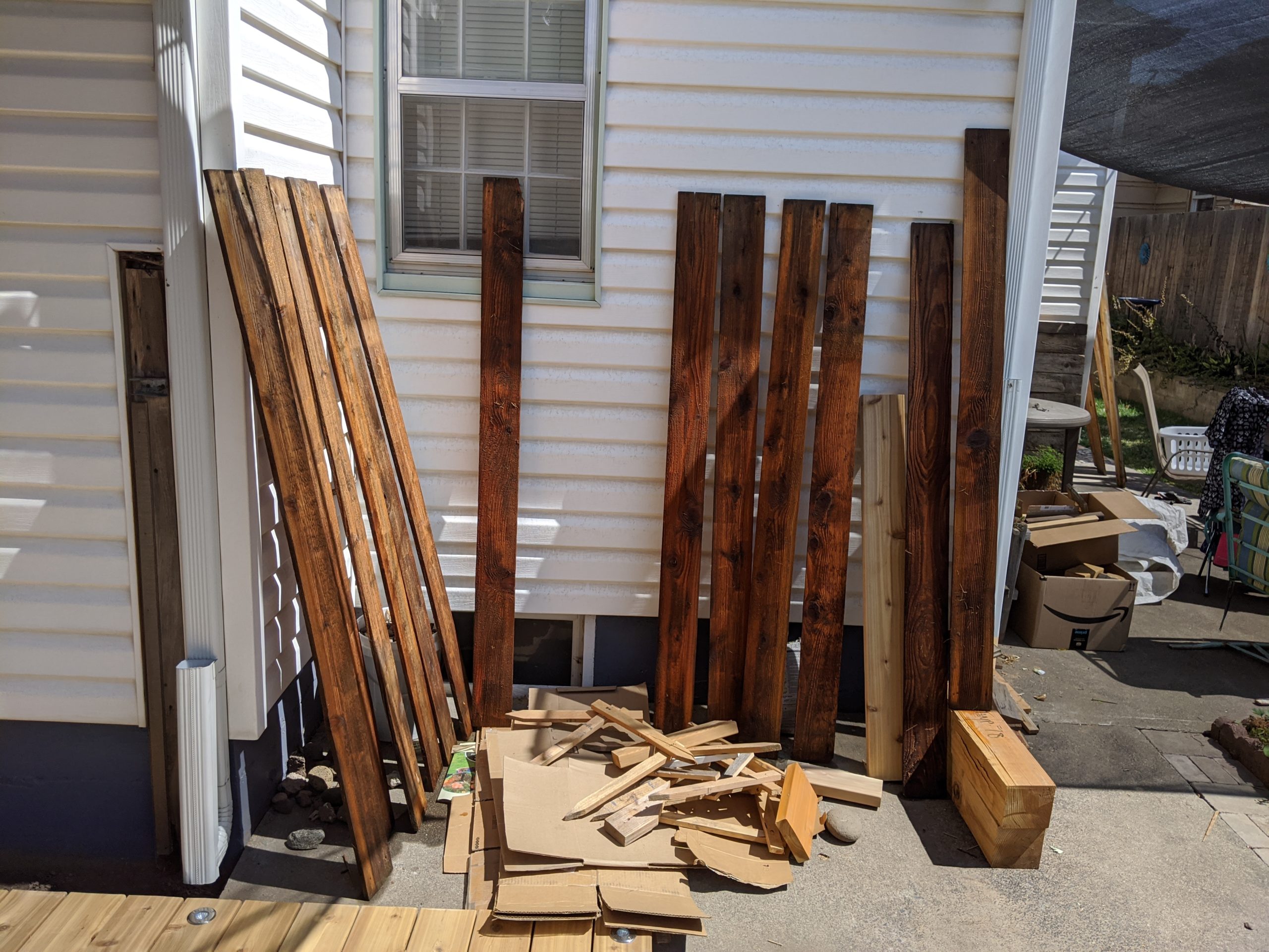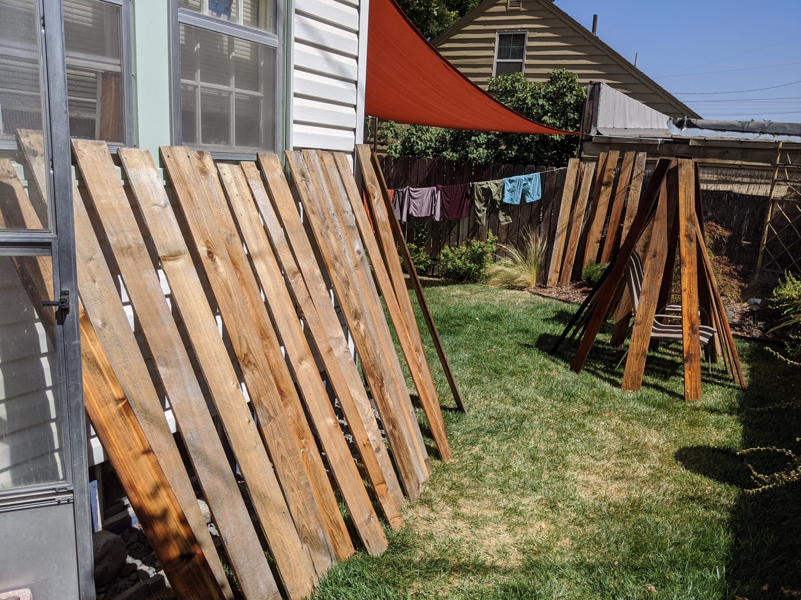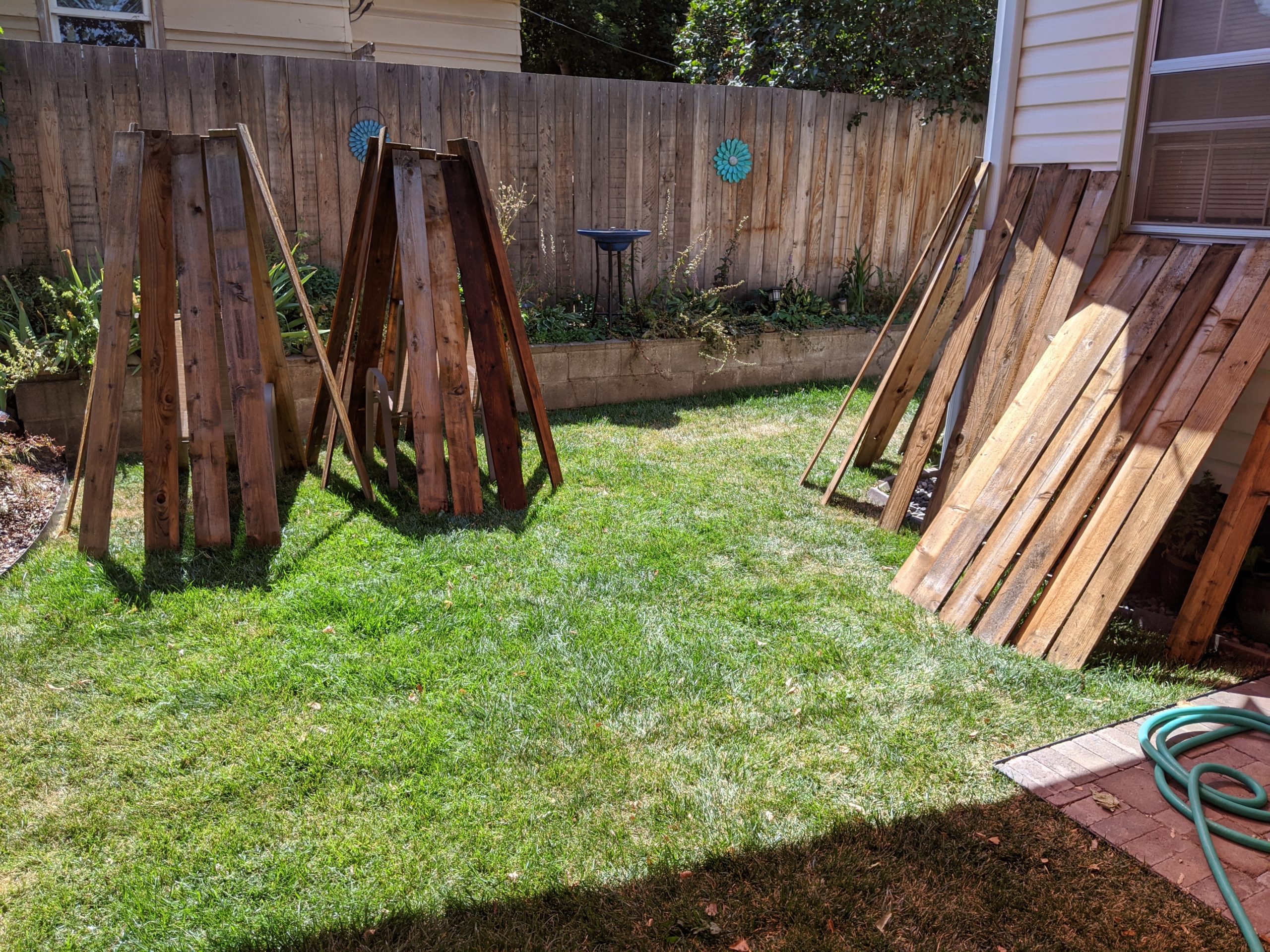 We wanted the boards to dry out quickly so set them up all over the yard in the sun: