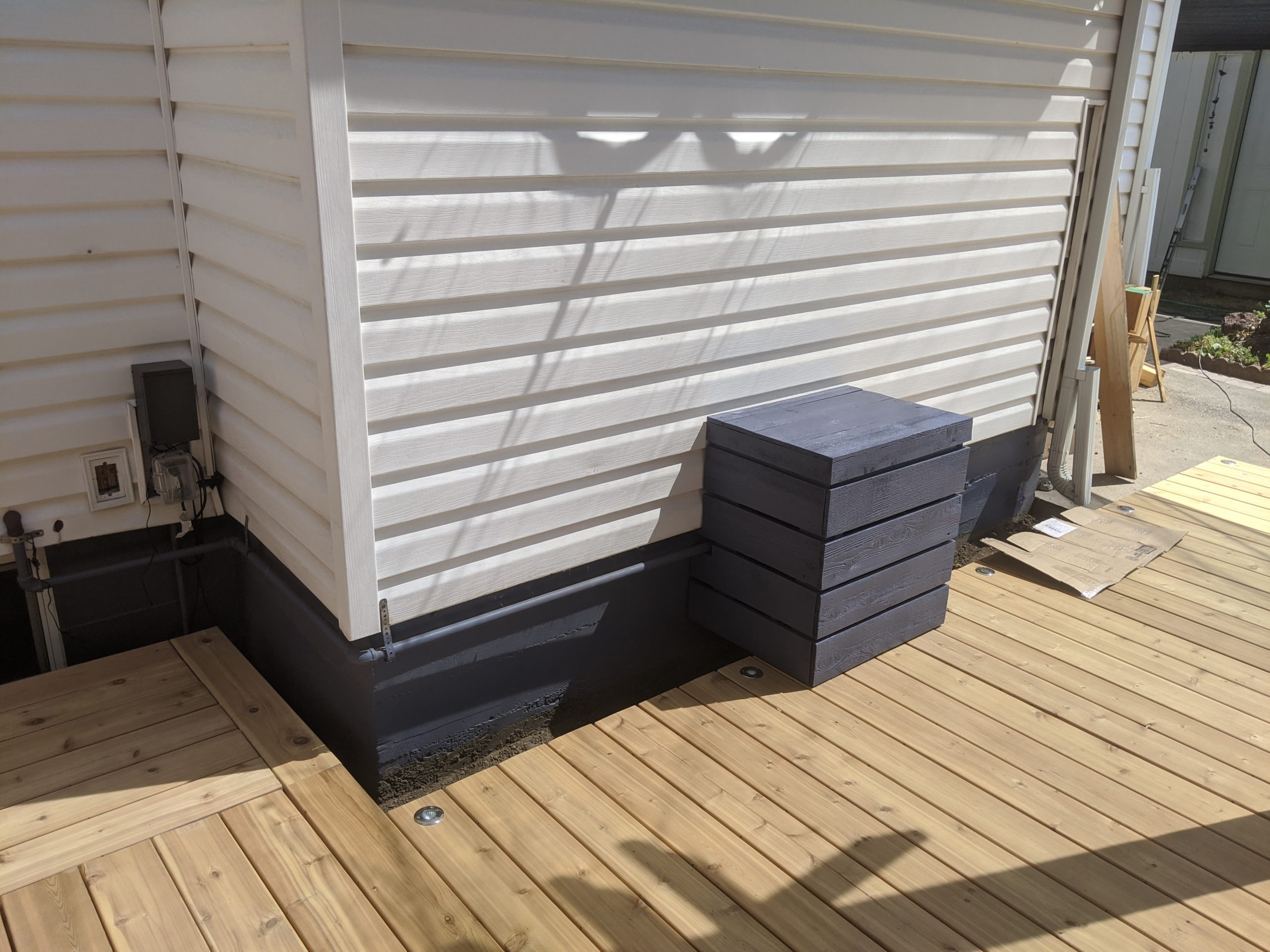 This “before” picture also illustrates how that raised deck area was an inviting space to stage bags of yard debris before taking them to the dump.