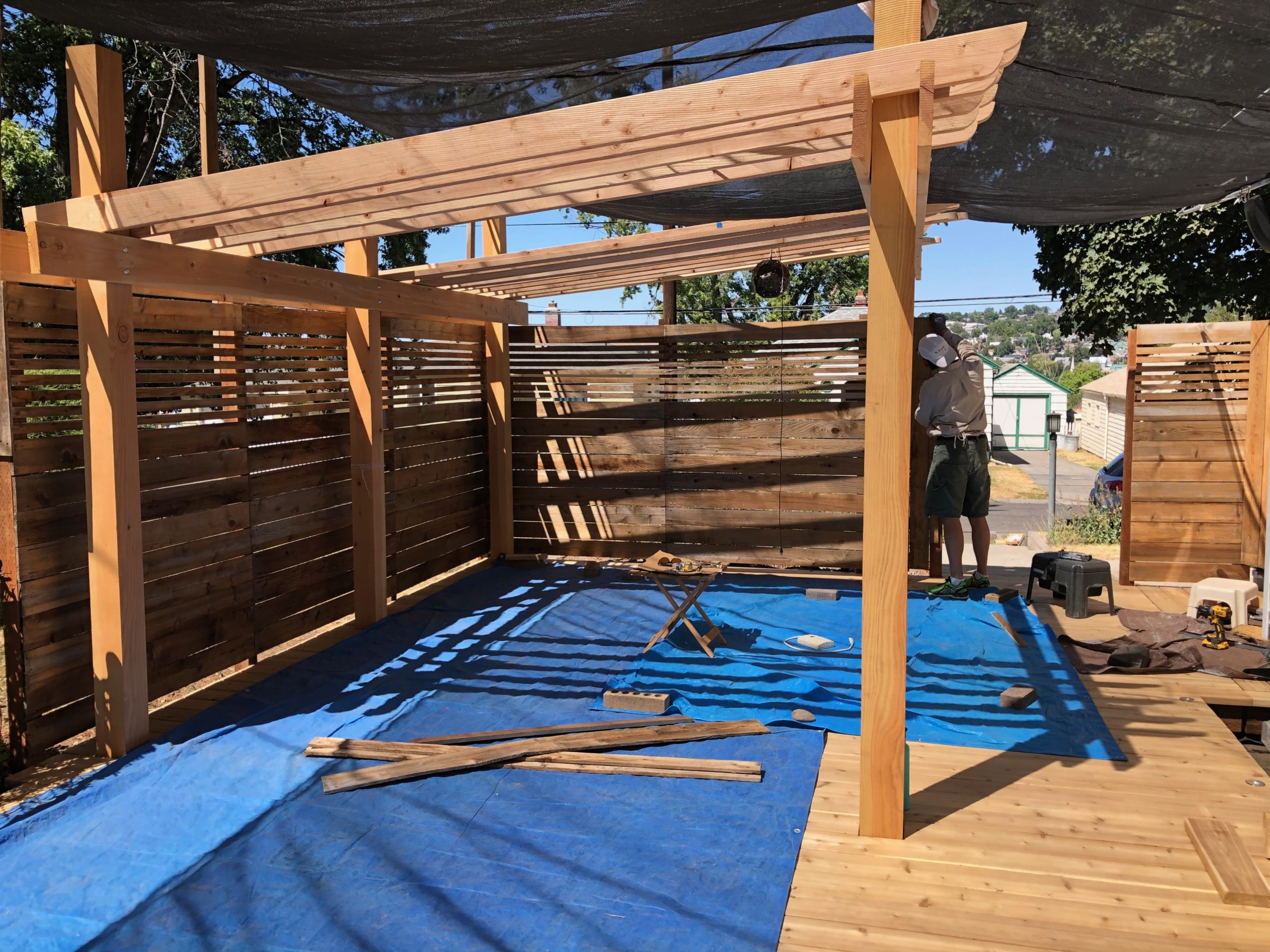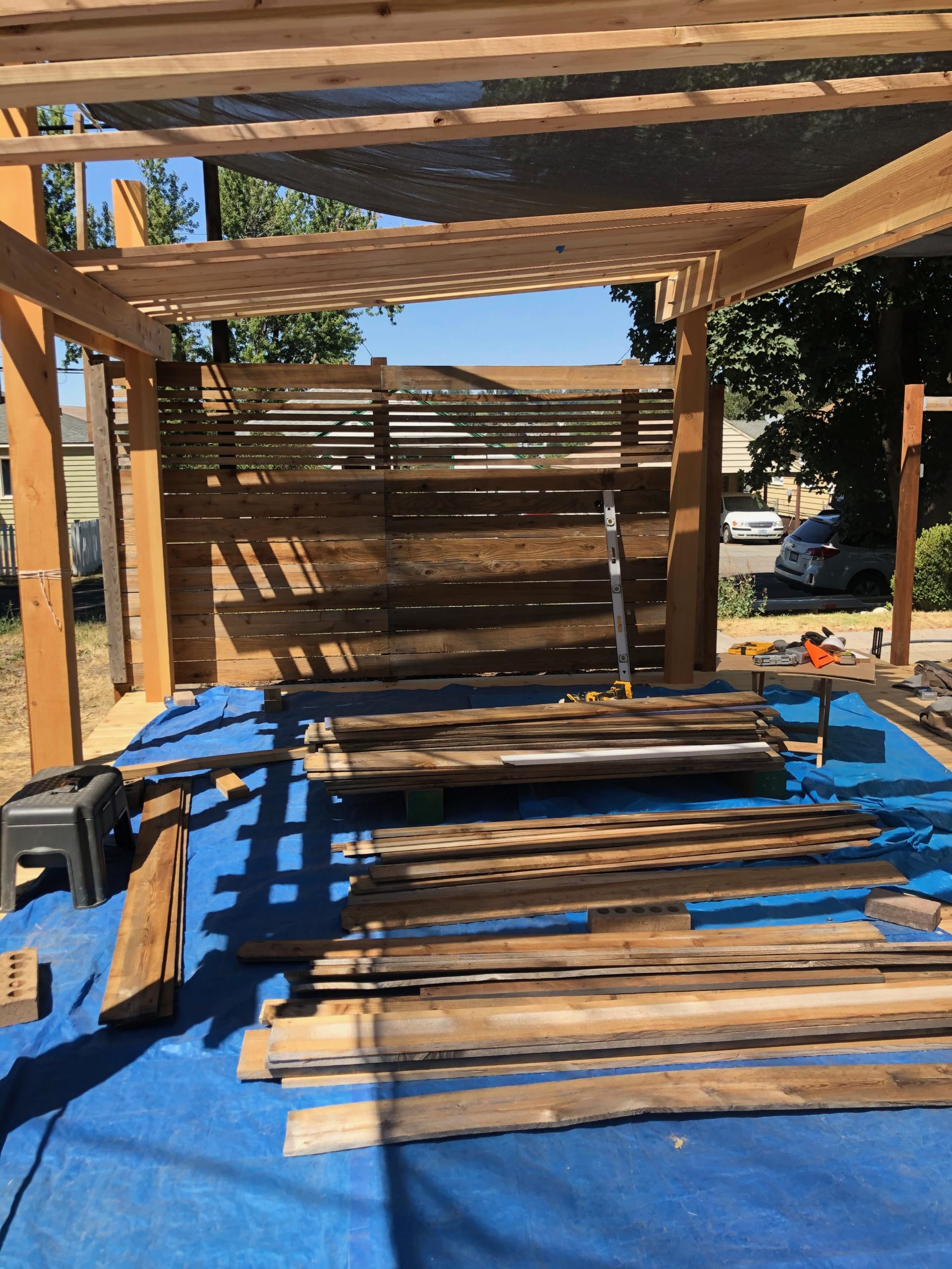 We built the fence around our old deck around 10 years ago. We used an overlapping privacy pattern that blocked out everything including the breeze. Without any shelter in that area, it was too hot to have no ventilation. We took out every 5th board and ended up with this: