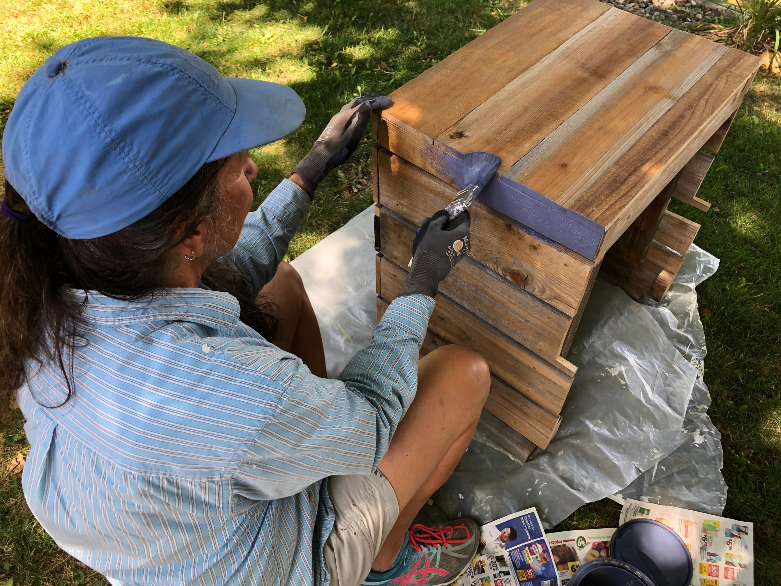 We also built a box using some of the extra fencing material to go around our gas meter. We decided to paint it purple to match the gate.